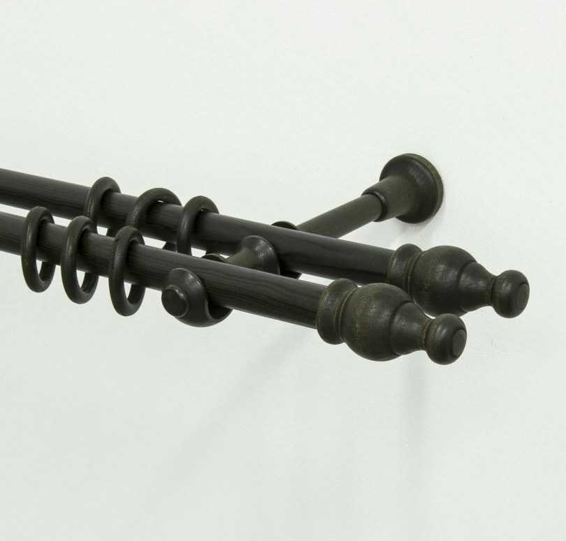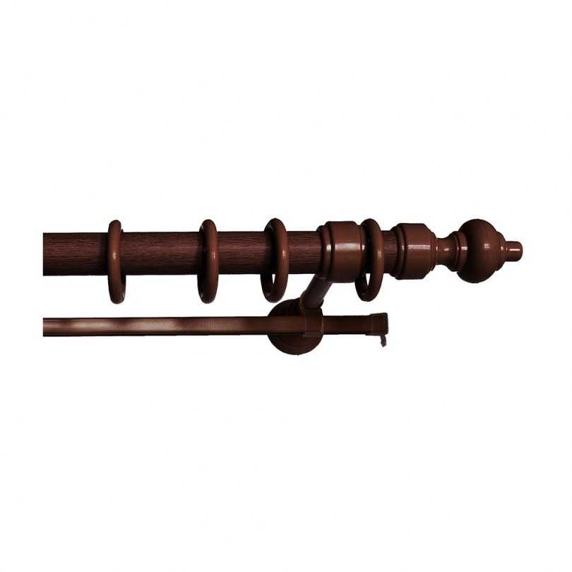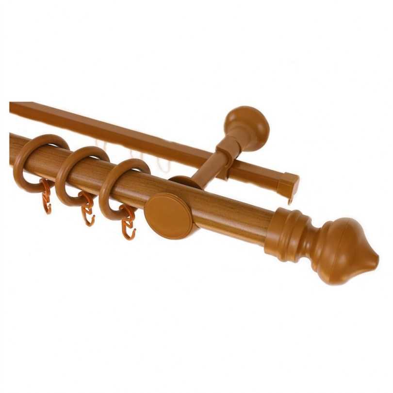 Конструкцию отделывают также медью, применяют латунное или бронзовое покрытие. При выборе деревянных карнизов предпочтение отдается вишне и ореху, хотя все большее распространение получают современные материалы — венге, пробка и т.д.