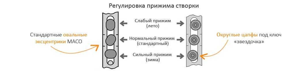 Когда в вашем окне фурнитура фирмы “Winkhaus”, тогда взяв эксцентрик двумя пальцами, способом поворота и движения вниз — вверх регулируют нужную силу прижатия створки к раме.
