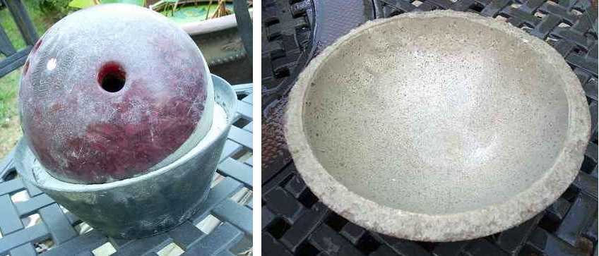 Пластиковый горшок, обернутый целлофановой пленкой, вставляем в первую форму, распрямляем складки. Закладываем раствор вокруг горшка. Нужно, чтобы такая громоздкая конструкция полностью высохла (уйдет не менее 8 дней). Потом вазон вынимают из формы и обрабатывают щеткой. Промывают и еще раз просушивают. Покрывают влажной мешковиной, куском ткани и оставляют дальше затвердевать, пока материал не приобретет светлый оттенок: это знак, что чаша готова.
