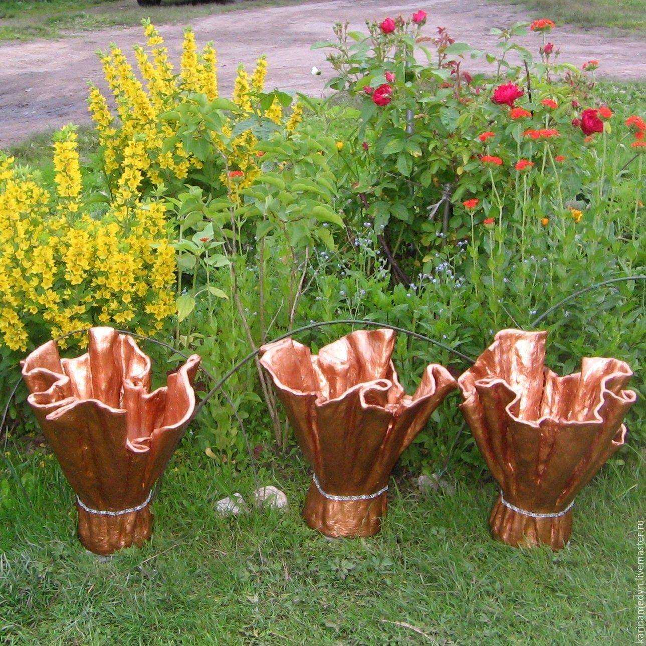 Металлические – отличаются высокой прочностью, но подвержены негативному воздействию влаги, поэтому время от времени их необходимо обрабатывать антикоррозийными составами. В современном производстве используются такие материалы, как сталь, латунь, реже – чугун. Особенно красиво смотрятся металлические вазоны в подставках, выполненных методом ковки;