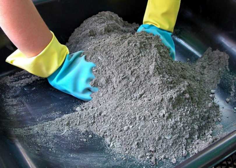 - Из цемента замешивают раствор в пропорции: 1 часть цемента, 3 части песка и воды. При необходимости добавить краситель. Раствор не должен стекать свободно со шпателя и при этом должен быть пригодным для лепки. Для укрепления в него можно добавить горсть измельченного стекловолокна.