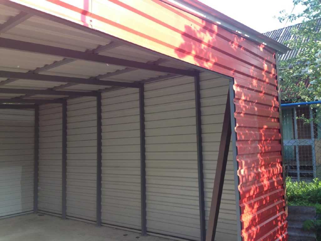 Непосредственно листы металлопрофиля. Они имеют стандартные размеры и можно выбрать привлекательную расцветку в зависимости от ваших предпочтений. Металлический уголок (труба) для постройки каркаса. Для опор желательно использовать большее сечение. Крепежные элементы