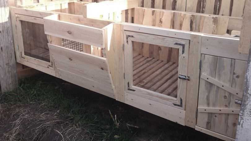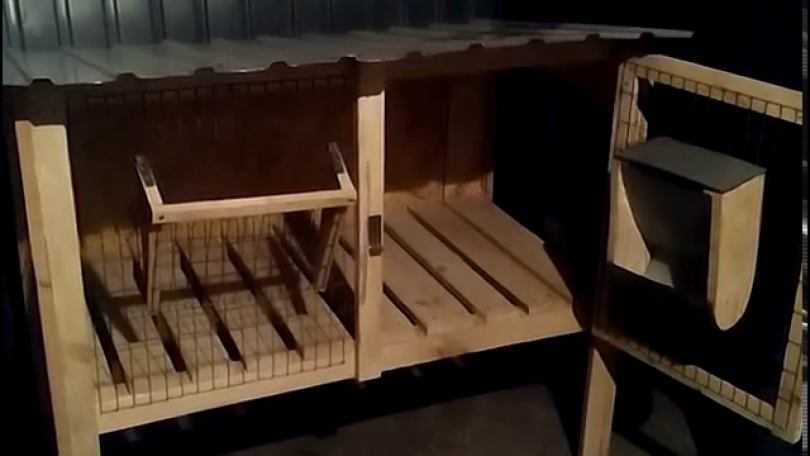 Самой же простой и доступной в самостоятельном изготовлении является двухсекционная конструкция. Она удобна при содержании и позволяет экономить место земельного участка. Для этого ее выставляют в несколько рядов. А также каждому хозяину кроликов необходимо иметь и двухместный крольчатник с маточником — его применяют для окрола и содержания молодняка, пока он не достигнет нужного возраста.