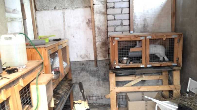 На небольшом участке помещения крольчатника размещают рабочий инвентарь.
