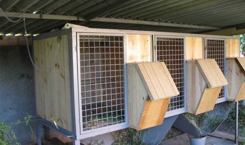 Кроликов можно выращивать в постройках различного типа, каждый из которых отличается своими характеристиками, имеет недостатки и преимущества. Кроличья мини-ферма по месту обустройства бывает открытая (уличная) и закрытая (размещенная, например, в сарае). При этом особой популярностью пользуется первый вариант, так как позволяет удобно разместить на улице более 100 особей. Уличные конструкции намного проще чистить и обслуживать, они устойчивы и надежны к эксплуатации. Клетки могут устанавливаться в несколько ярусов, над которыми крепится навес, защищающий их от осадков и солнечных лучей.